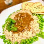 Coconut Curry Shrimp or Chicken over Rice with Peas, $18.00 ++