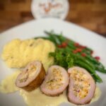 Stuffed Chicken Breast Cordon Bleu. Potatoes & Fresh Vegetables. $18.00 ++