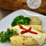 Chicken Crepes with Rice Pilaf & Broccoli. $18.00 ++
