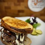 Patty Melt. Served with Soup or Salad or French Fries. $17.00 ++